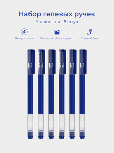 Набор ручек Гелевая, толщина линии: 0.5 мм, цвет: Черный, 6 шт.