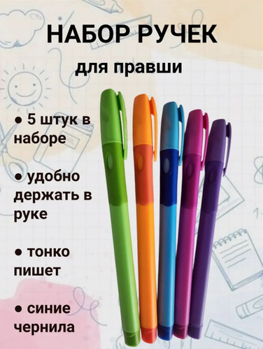 Шариковые ручки для школы для правши, 5 штук в наборе
