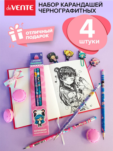 Набор простых карандашей чернографитных для рисования с ластиком NicoNico на корпусе 4 шт