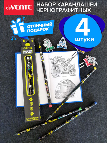 Набор простых карандашей чернографитных для рисования с ластиком SuperHero на корпусе 4 шт
