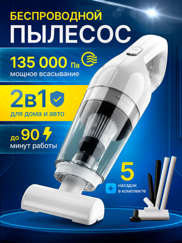 Пылесос автомобильный беспроводной ручной, мощный, для салона и дома