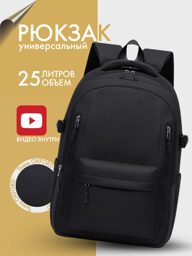 Рюкзак (ранец) черный женский, мужской, школьный, подростковый городской, универсальный, для ноутбука