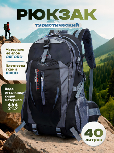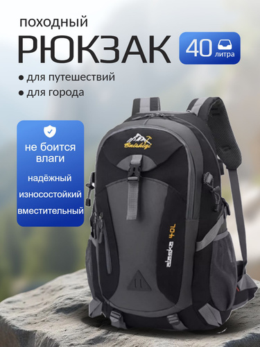 Рюкзак туристический Alaska 40L, унисекс с нагрудным ремнём и непромокаемым покрытием, цвет: черный