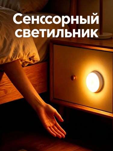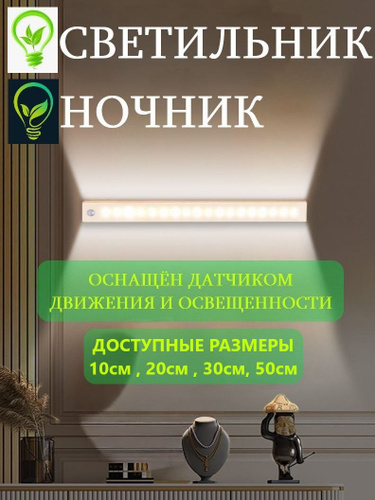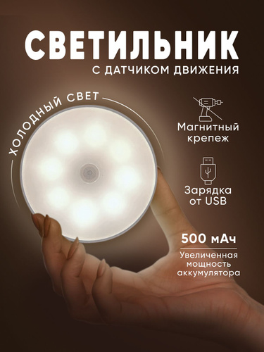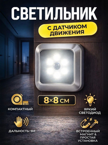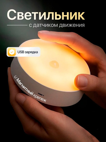 Беспроводной светодиодный светильник с датчиком движения. На батарейках. Лампа, ночник