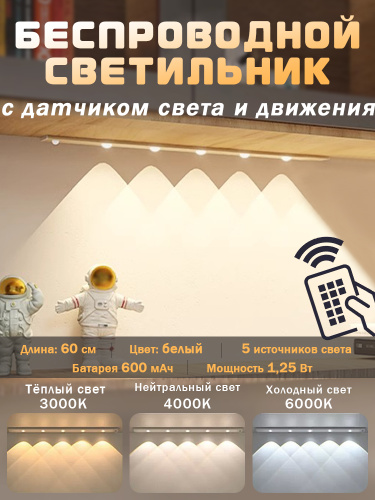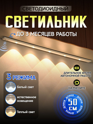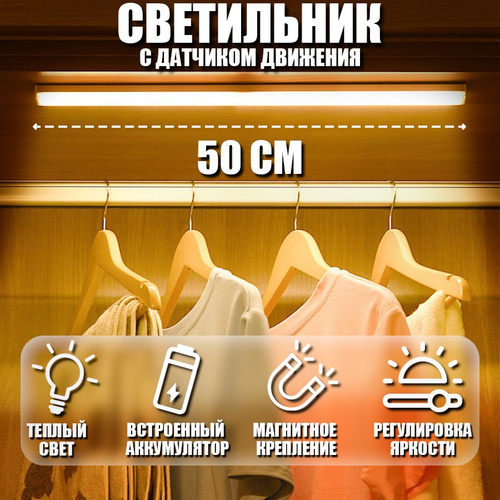 Светильник с датчиком движения, 60 см беспроводной на аккумуляторе