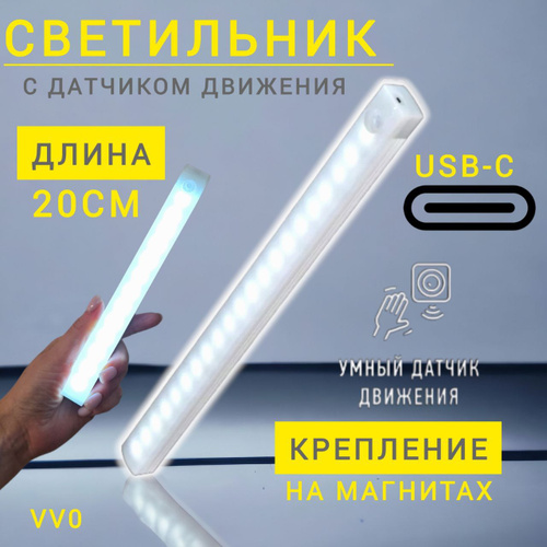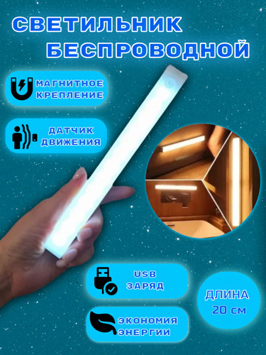 Беспроводной светодиодный светильник/ночник с датчиком движения, 20 см