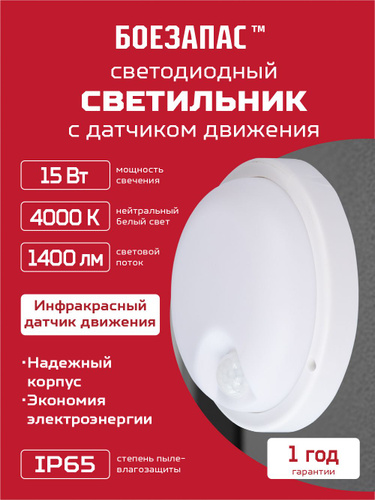 Светильник светодиодный с датчиком 10Вт, 4000K