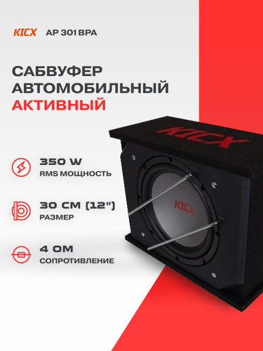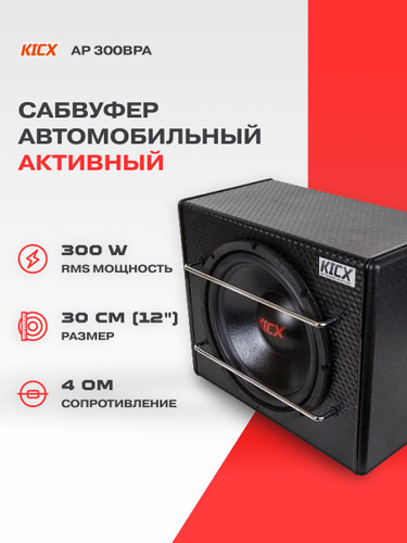 Сабвуфер для автомобиля Kicx AP300BPA, 300Вт, активный, 2013753