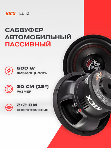 Сабвуферный динамик Kicx LL12 (2+2 Ohm. 1200 Вт.)