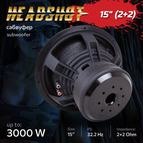 Сабвуферный динамик Kicx Head Shot 15" (2+2 Ом 3000 Вт.)