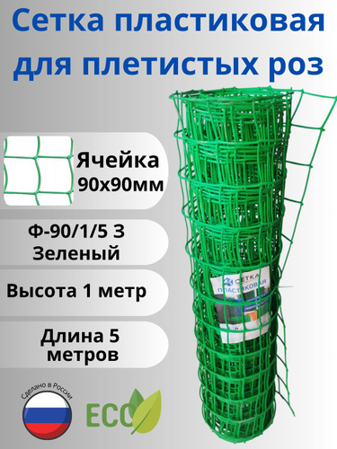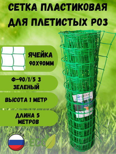 Сетка пластиковая для плетистых роз Зеленый, высота 1 м, длина 5 м, ячейка 9х9 см