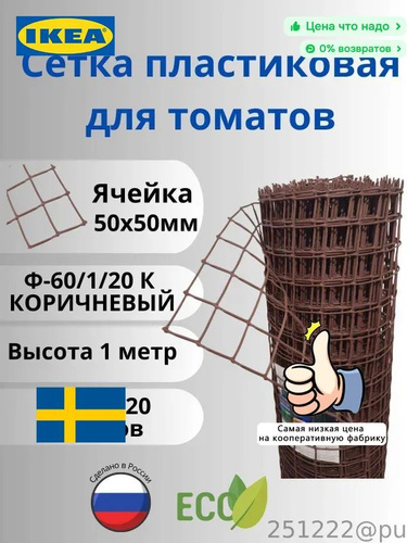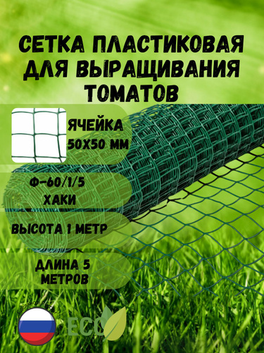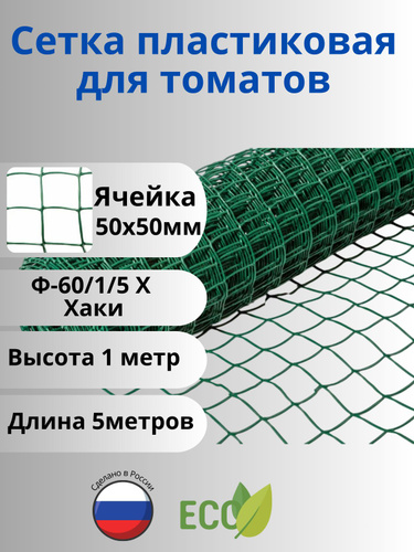 Сетка для томатов Ф-60/1/5 Хаки, высота 1 м, ячейка 50х50 мм, длина 5 м.