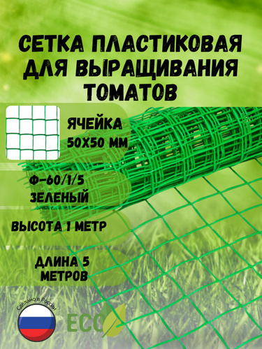 Сетка для томатов Ф-60/1/5 Зеленый, высота 1 м, ячейка 50х50 мм, длина 5 м.