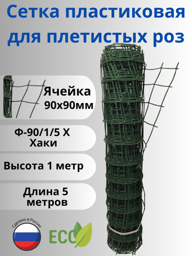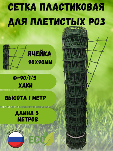 Сетка пластиковая для плетистых роз Хаки, высота 1 м, длина 5 м, ячейка 9х9 см
