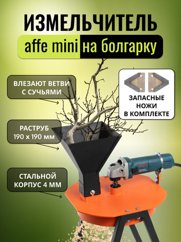 Измельчитель садовый для веток на УШМ Affe mini + запасной набор ножей
