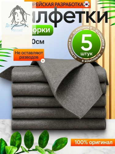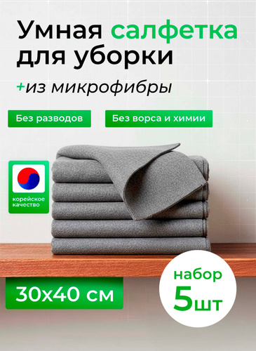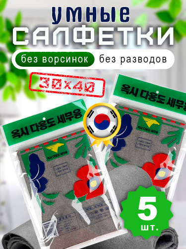Корейская универсальная салфетка из микрофибры для уборки, 30х40 см., 5 шт.