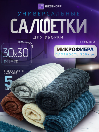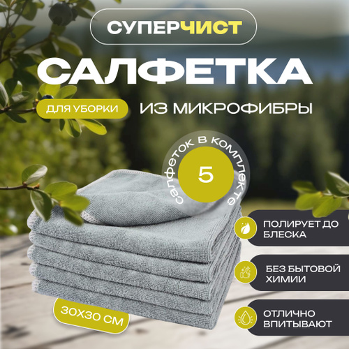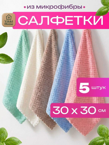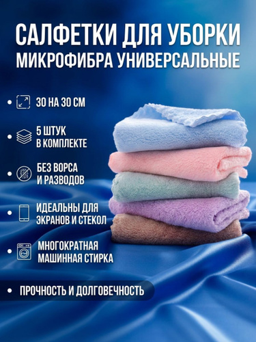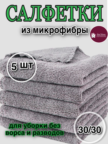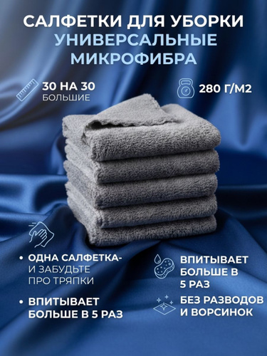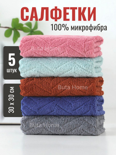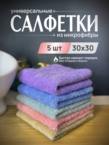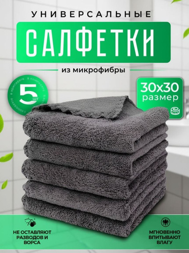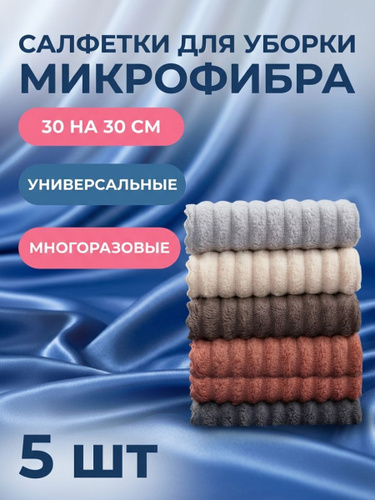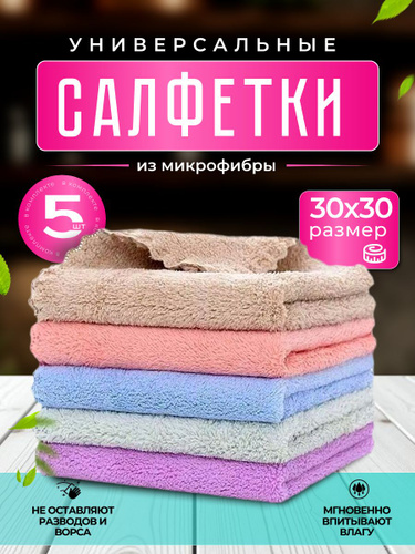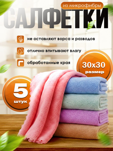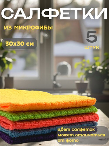 Салфетки для уборки из микрофибры большие 30х30см 5 штук