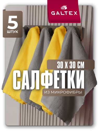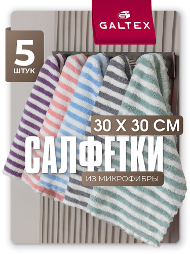 Салфетки для уборки из микрофибры - 5 шт. (30х30), 250 гр GALTEX Страйп