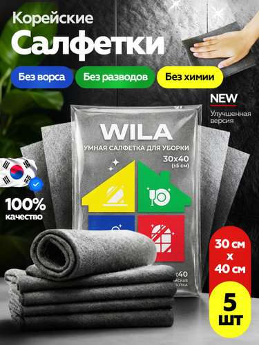 WILA Салфетки для уборки блеск в доме от вила, Темно-серый, 30х40 см, 5 шт.