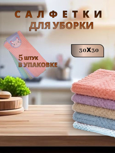 Салфетки для уборки из микрофибры набор 5шт 30х30 см