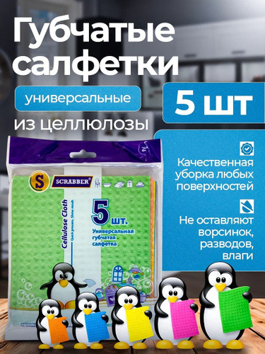 SCRABBER Салфетки для уборки Салфетки, цветные, 15 см, 5 шт.