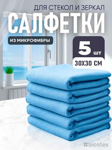Салфетки из микрофибры для стекол и зеркал 30*30 5шт
