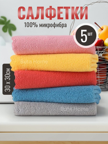 Салфетка для уборки и кухни микрофибра набор 5 штук 30х30