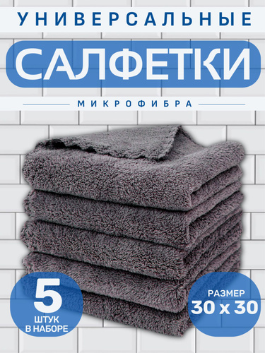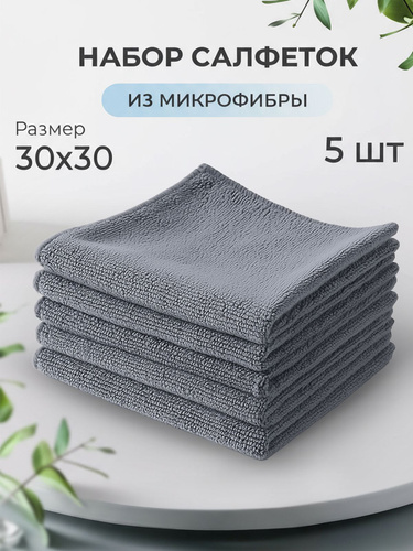 Салфетки для уборки, тряпки для кухни и уборки из микрофибры в наборе 5 штук, размер 30/30 см, серые