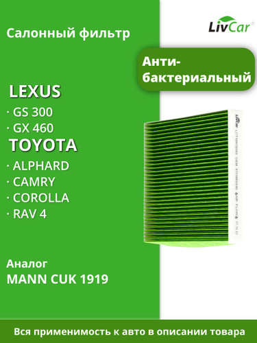 Салонный фильтр антибактериальный Toyota - Rav 4, Camry (40 50), Corolla, Land Cruiser 200 Auris, Avensis + Lexus Jaguar Land Rover /кросс-номер MANN CUK 1919 /OEM 8713950060 8713950100