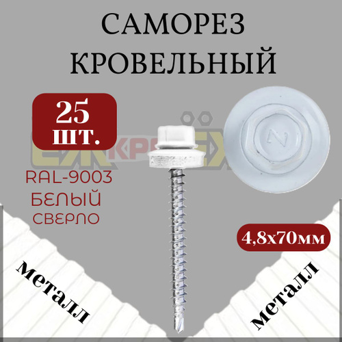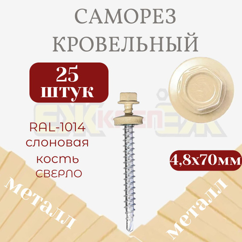 Саморезы кровельные 4,8х70 мм Слоновая кость RAL-1014 (25 шт.)