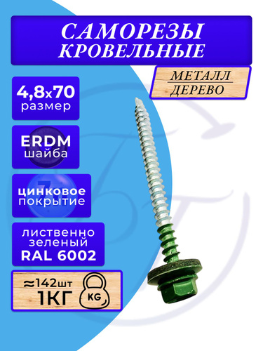 Саморезы кровельные по дереву 4.8х70 RAL 6002 (лиственно-зелёный)