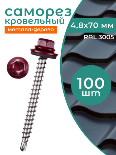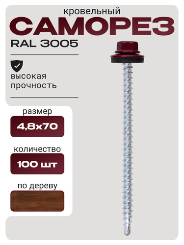Саморезы кровельные 4,8х70 по дереву RAL 3005 (Винно-красный) 100 шт