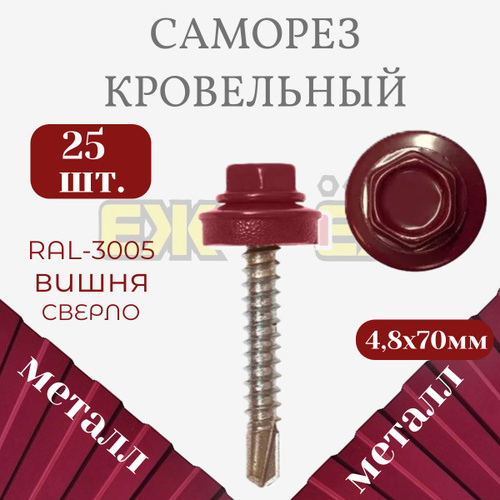 Саморезы кровельные 4,8х70 мм Вишня RAL-3005 (25 шт)