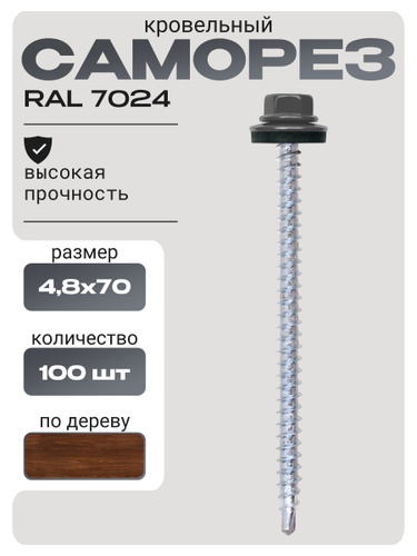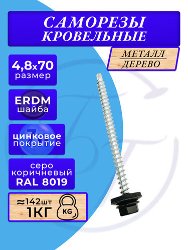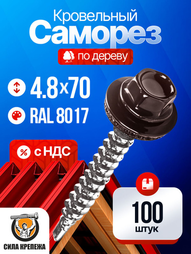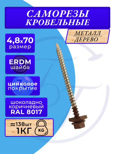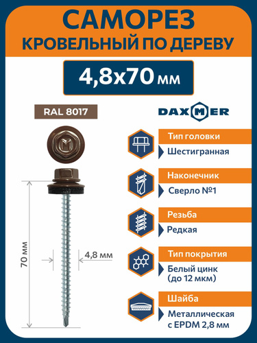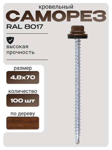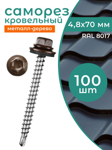 Саморез кровельный 4,8x70 коричневый RAL 8017 (100 шт)