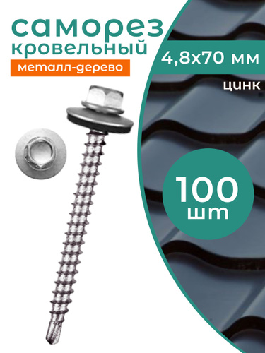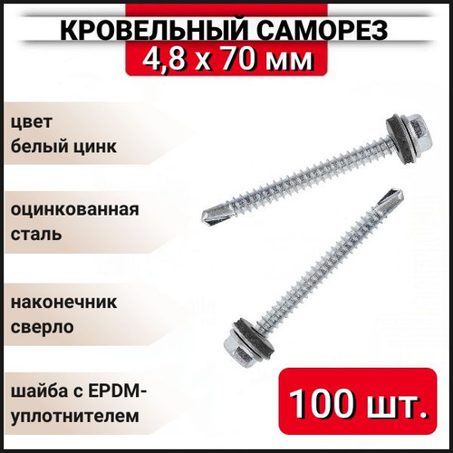 Кровельный саморез оцинкованный с буром 4,8x70 мм, 100 шт.