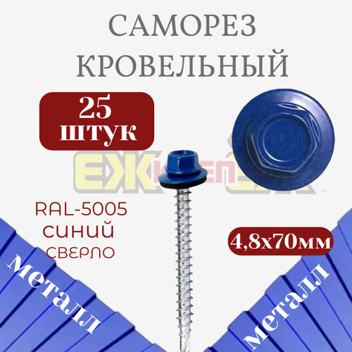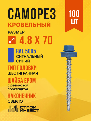 Саморез кровельный 4.8х70 RAL 5005 (сигнальный синий) 1кг