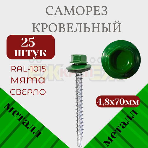 Саморезы кровельные 4,8х70 мм Мята RAL-6029 (25 шт)