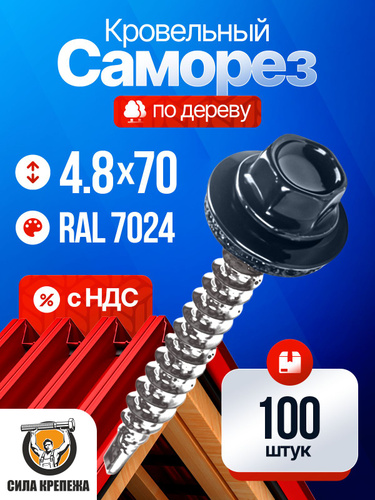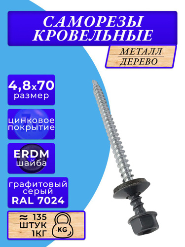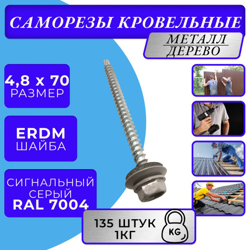 Саморезы кровельные по дереву 4.8х70 RAL 7004 (Сигнальный серый) 1кг