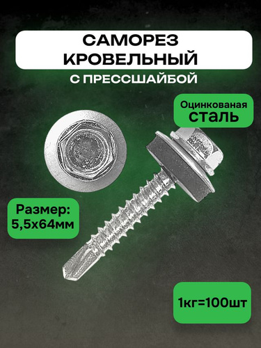 Саморез кровельный сверло 5,5 x 64мм 100шт.