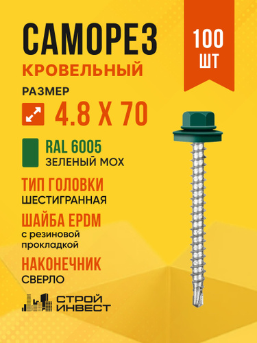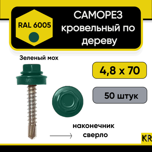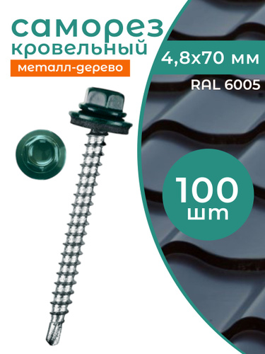 Саморезы кровельные 4,8х70 по дереву RAL 6005 (Зеленый мох) 100 шт