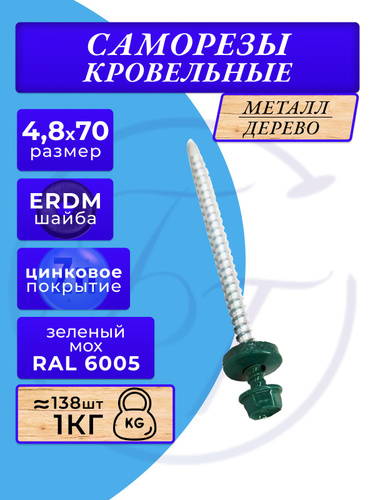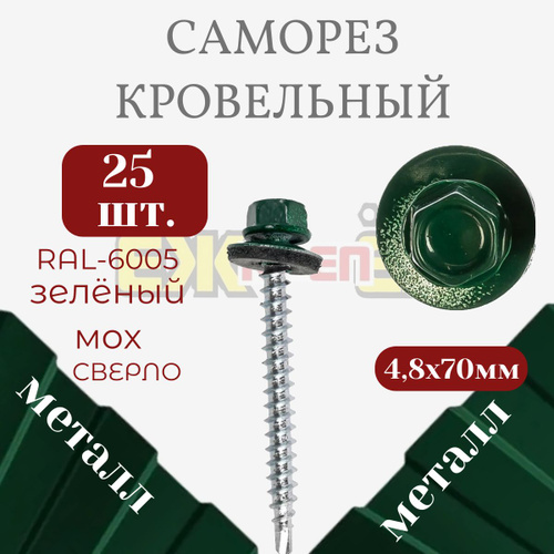 Саморезы кровельные 4,8х70 мм Зеленый мох RAL-6005 (25 шт)