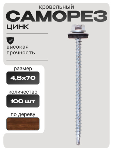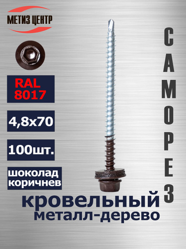 Саморез КРОВЕЛЬНЫЙ 4,8х70 шестигран СВЕРЛО 100 шт шоколадно-коричневый (RAL 8017)