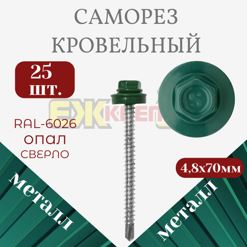 Саморезы кровельные 4,8х70 мм Опал RAL-6026 (25 шт)