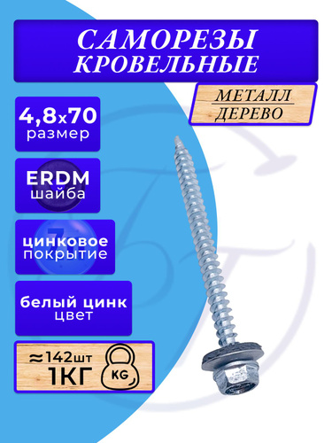 Саморез кровельный 4.8х70 мм ( 55 шт. ) 0.5 кг оцинкованный