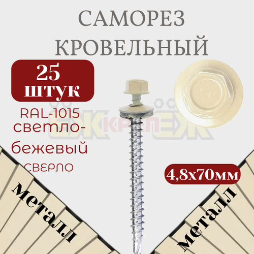Саморезы кровельные 4,8х70 мм Светло-бежевый RAL-1015 (25 шт)