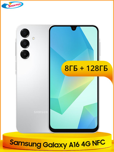 Samsung Смартфон Samsung Galaxy A16 4G NFC 50Мп Тройная основная камера Батарея 5000 мАч 6,7 дюйма 90Гц AMOLED Экран Лучшая водозащита IP54 4/128 ГБ, светло-серый