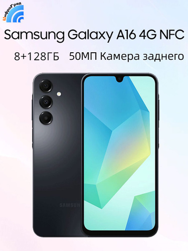 Samsung Смартфон Samsung Galaxy A16 4G NFC 50Мп Тройная основная камера Батарея 5000 мАч 6,7 дюйма 90Гц AMOLED Экран Лучшая водозащита IP54 8/128 ГБ, черный