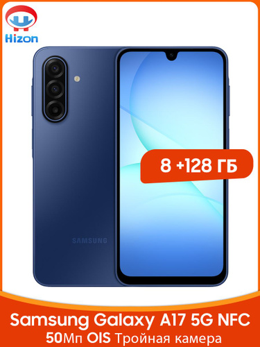 Samsung Смартфон Samsung Galaxy A17 5G NFC Емкая батарея 5000 мАч 50Мп OIS Тройная основная камера 6,7 дюйма 90Гц AMOLED Экран Лучшая водозащита IP54 8/128 ГБ, синий