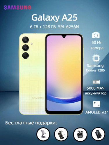 Samsung Смартфон Galaxy A25 5G (Новый и оригинальный )SM-A256N 1sim Global 6/128 ГБ, желтый