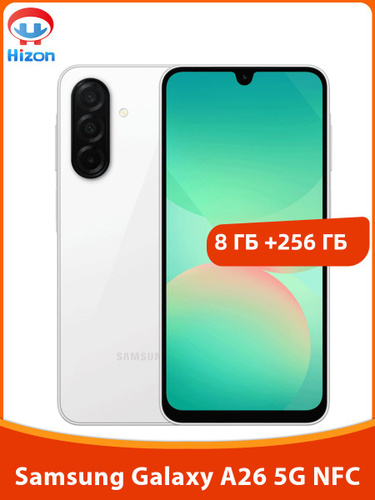 Samsung Смартфон Samsung Galaxy A26 5G NFC 50Мп OIS Тройная основная камера Емкая батарея 5000мАч 6,7 дюйма 120Гц Spuer AMOLED Экран влаги и пыли по стандарту IP67 8/256 ГБ, белый